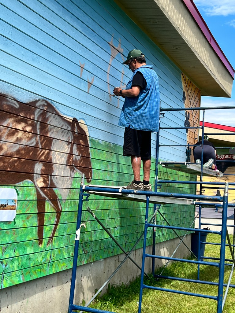 Du 24 au 28 juillet 2023, le projet a réunit quatre jeunes Innues – Noémie, Katéri, Kristina et Aurélie – de Uashat mak Mani-Utenam, ainsi que deux artistes professionnels de la communauté, Jacques Newashish et Anatole St-Onge. Ils participent d’abord à une résidence de deux jours, suivie de cinq jours de création artistique consacrés à la réalisation d’une murale à grande échelle. Cette expérience permet aux jeunes d’acquérir et d’intégrer divers procédés techniques et artistiques tout au long de leur implication dans la conception de la fresque.